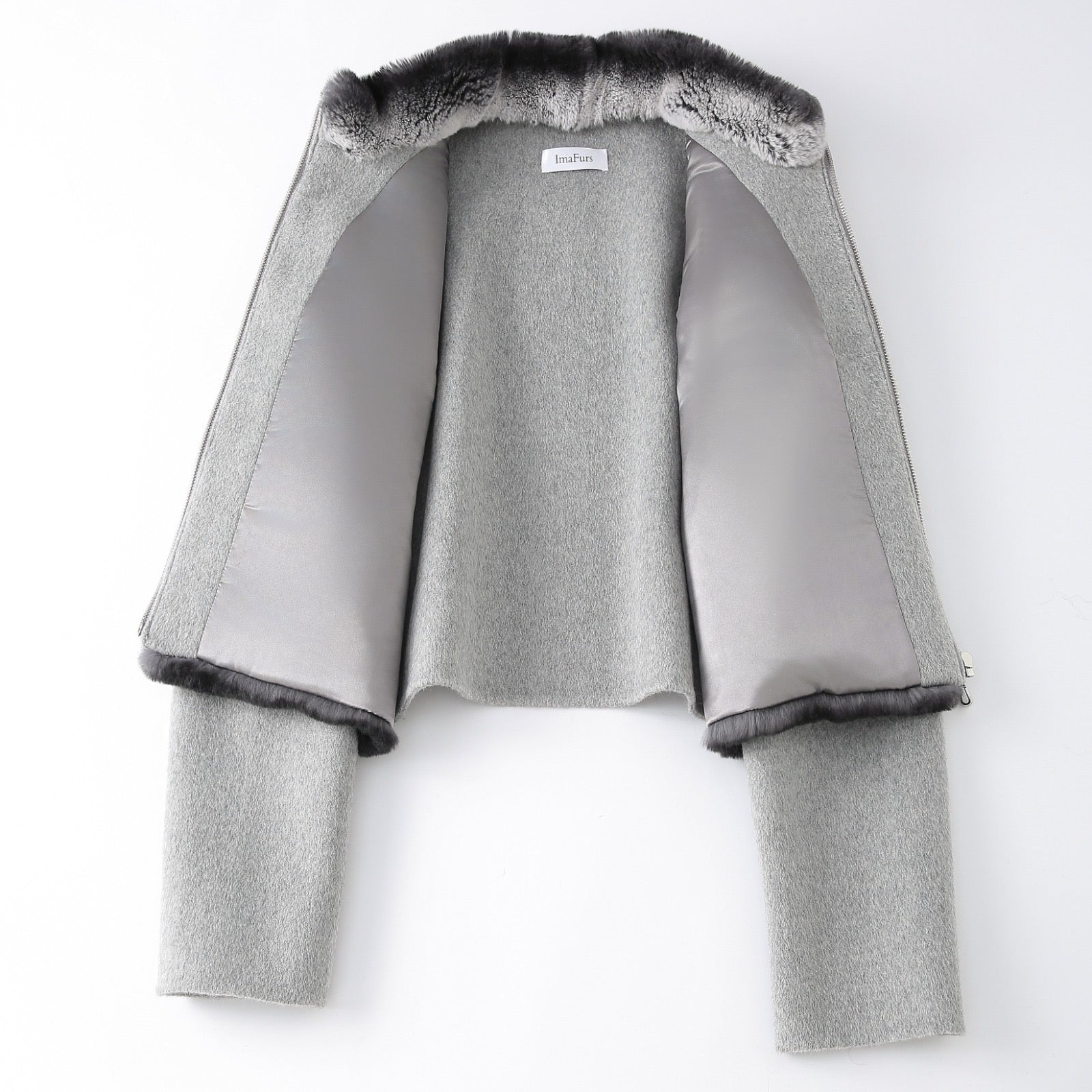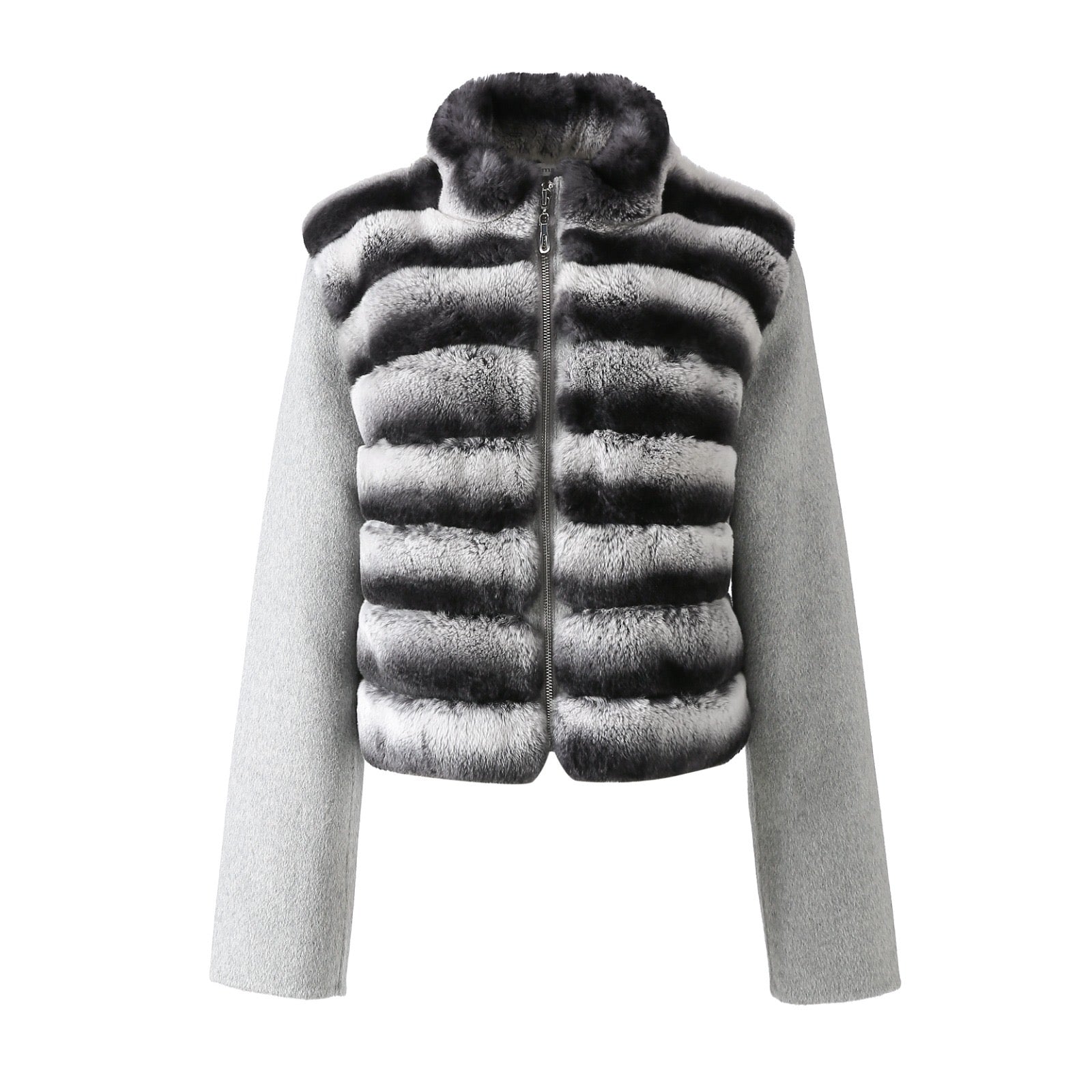 A soft blend of luxury and comfort. The Aleïa coat combines plush Rex rabbit fur with warm wool sleeves, creating a timeless and modern look.
