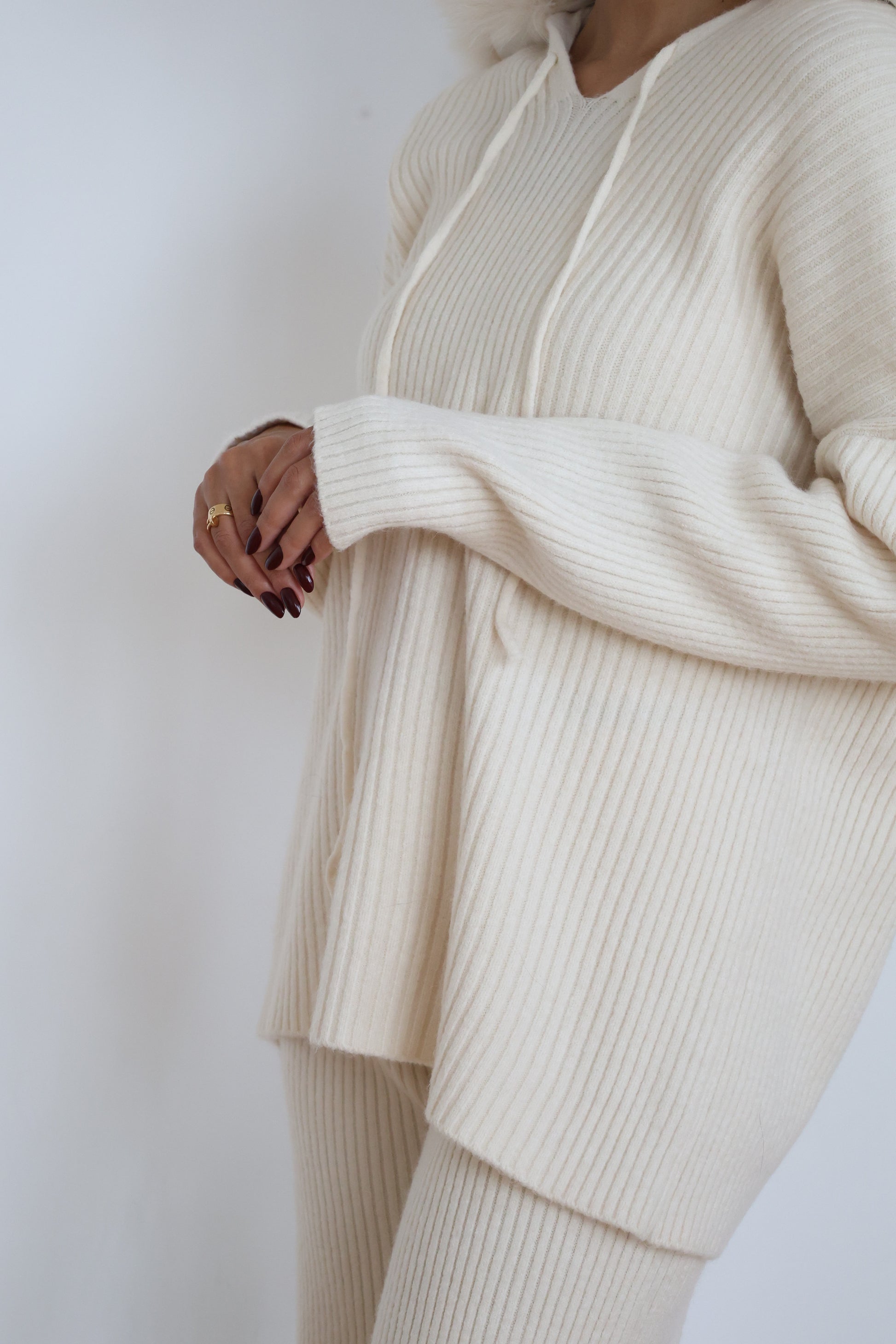 This cozy and stylish set includes a top and pants, perfect for staying warm and fashionable. Made from a soft mix of cotton and acrylic with real fox fur details ( removable )
